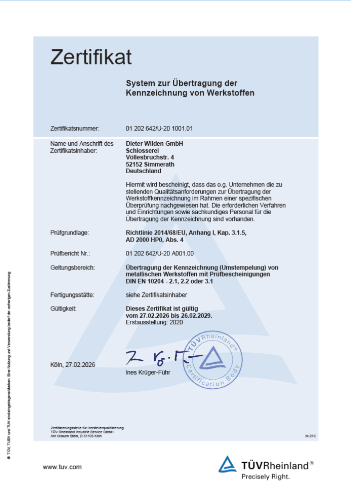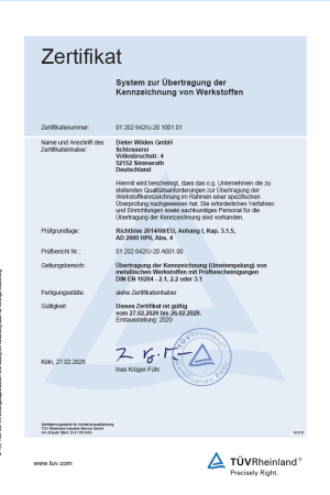 Zertifikat zur Konformität der werkseigenen Produktionskontrolle